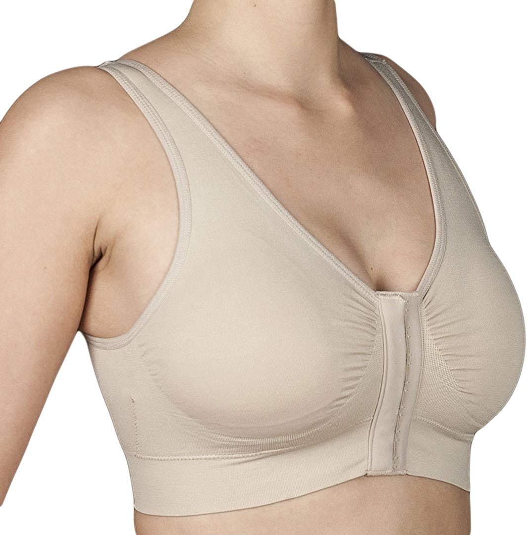 Reggiseno postoperatorio in cotone con chiusura frontale.