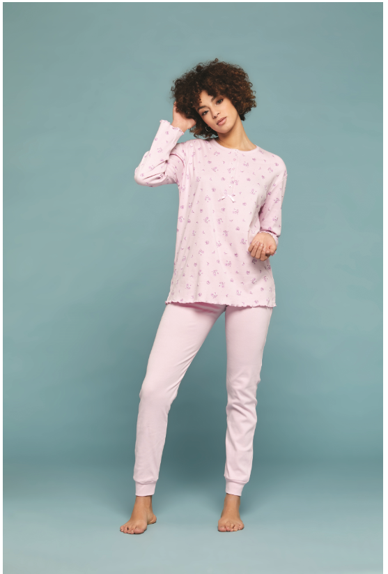 Pigiama Donna Interlock con 5 bottoni manica lunga pantalone lungo Cippi