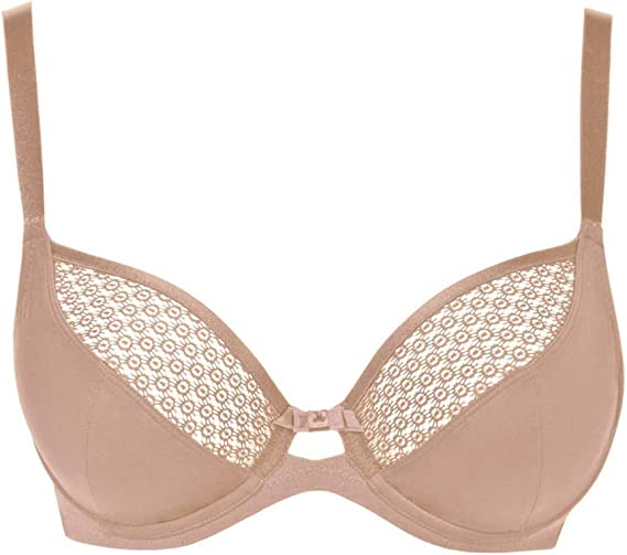 Reggiseno preformato con coppe lievemente imbottite decorate in corposo tessuto lavorazione a maglia di alta qualità con dettagli in leggero pizzo floreale elasticizzato dal look molto femminile al centroseno e nelle fasce laterali