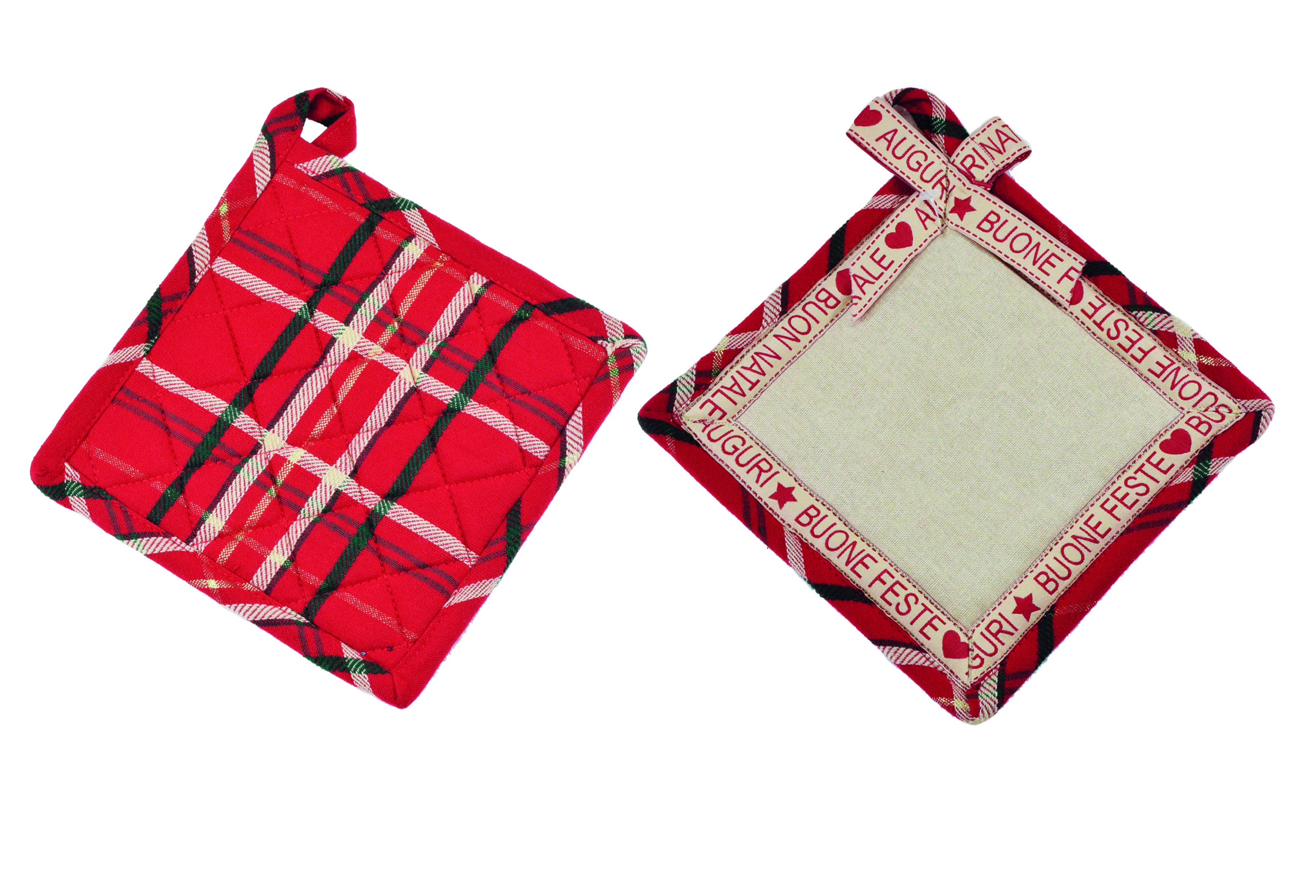Set 2 presine stampate. COMPOSIZIONE: 100% Cotone. MISURE: 18×18 cm.