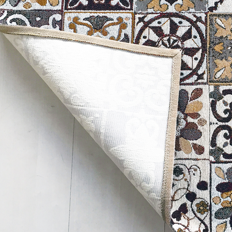 Tessitura: jacquard. Peso totale: 1020 gr./mq. Fondo in lattice
