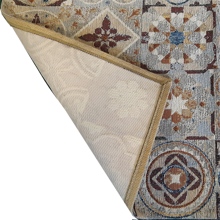 Tessitura: jacquard. Peso totale: 1020 gr./mq. Fondo in lattice