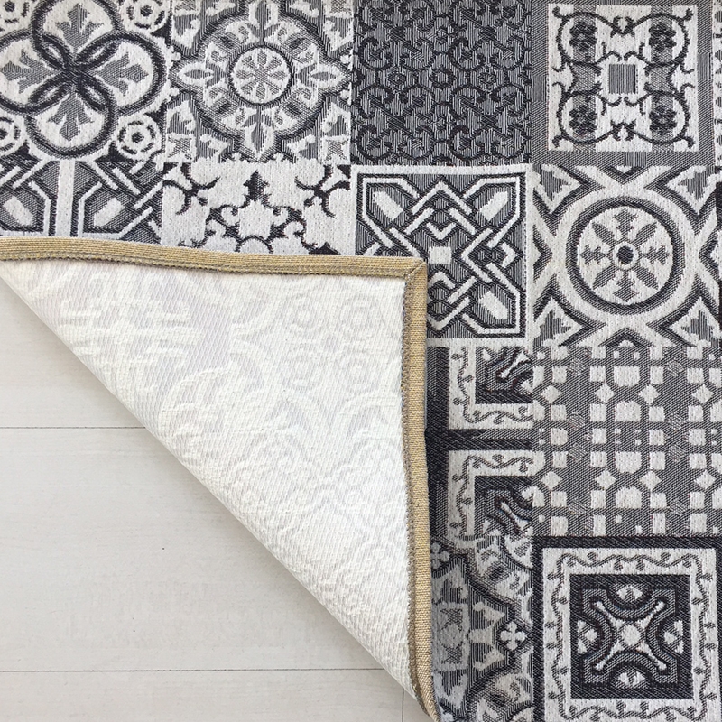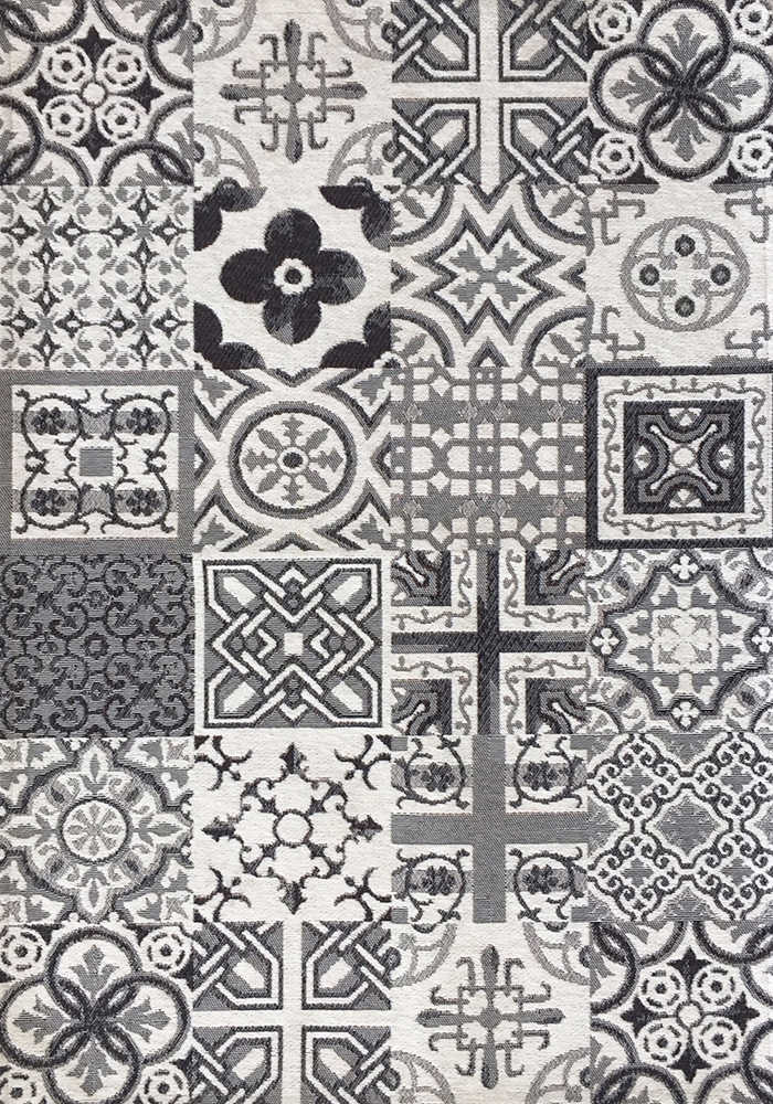 Tessitura: jacquard. Peso totale: 1020 gr./mq. Fondo in lattice