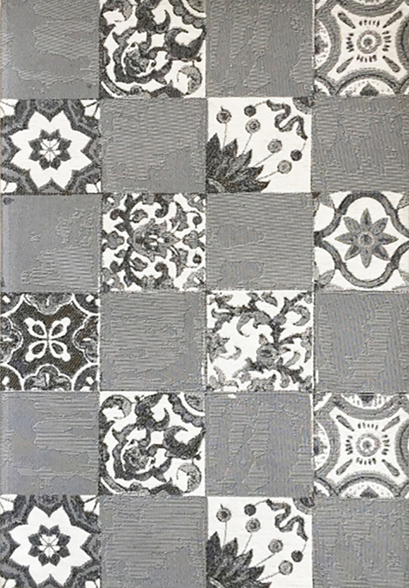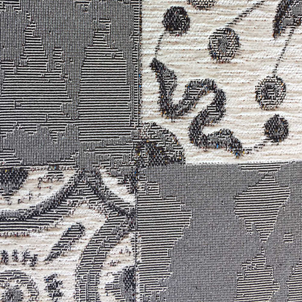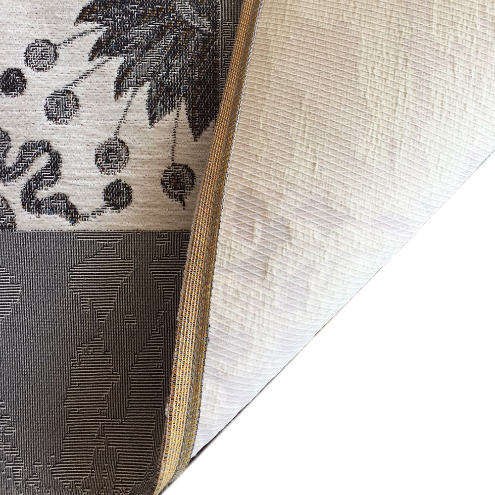 Tessitura: jacquard. Peso totale: 1020 gr./mq. Fondo in lattice